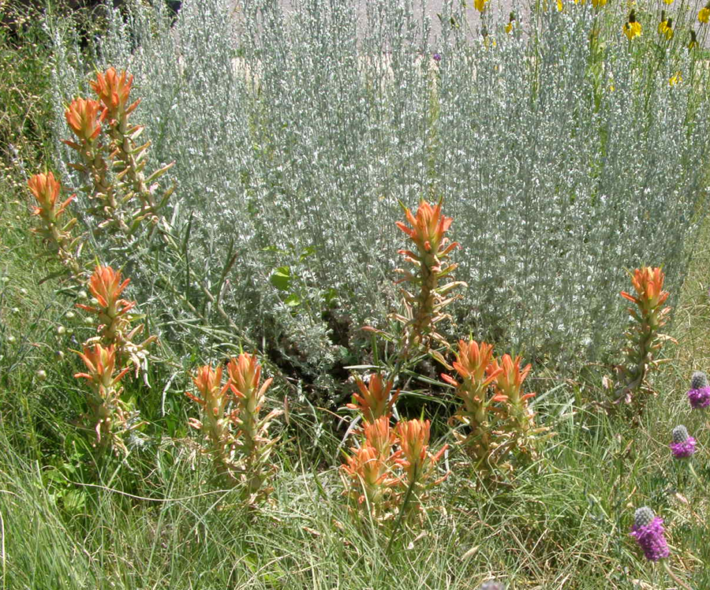 - Artemisia frigida (fringed sage) and Castillega integra (indian paintbrush). This is a classic combination, as indian paintbrush is hemiparasitic, meaning it attaches to the roots of host plants to siphon nutrients. I think paintbrush also looks good and survives with many native grasses.