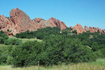 Along the Front Range, large thickets of Gambel Oak can be viewed along the trails and roads at Roxborough State Park, Waterton Canyon and Garden of the Gods. In the wild the tree primarily spreads through underground suckers rather than growing from seeds. Research has shown that the trees in a grove are all monoclonal (they have the same DNA), similar to large aspen forests.