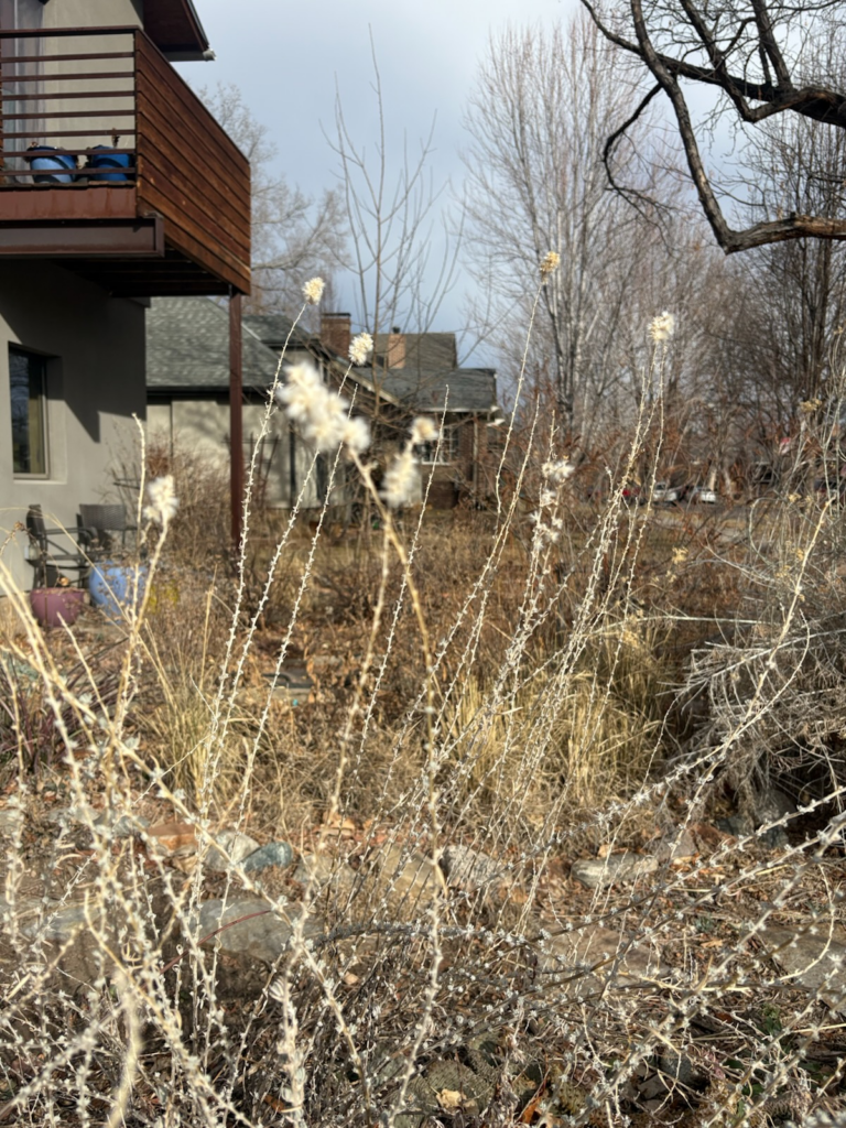 It probably isn’t used much because it’s not showy. It doesn’t have a gorgeous bloom. But those little puffs of white in the winter landscape are show stoppers! I can’t tell you how many people ask me what that plant is. It is a low-spreading plant, important for wildlife. The protein content of winterfat is close to alfalfa, making it a valuable forage plant. And granted, not many of us have mule deer, cattle, or bighorn sheep roaming our gardens, but this native plant has other ecosystem values as well. It attracts ground-dwelling birds and a variety of small mammals. It is extremely hardy, remarkably drought-tolerant, and does not need fertilization.